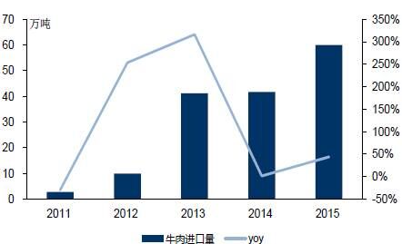 目前國內(nèi)市場上牛肉供應(yīng)主要由國內(nèi)、進(jìn)口、走私三部分組成。過去我國牛肉消費主要由國內(nèi)產(chǎn)量滿足,但近年來由于養(yǎng)殖成本、價格差異等原因,進(jìn)口牛肉量增長較快,體現(xiàn)出了更為強勁的增長態(tài)勢。